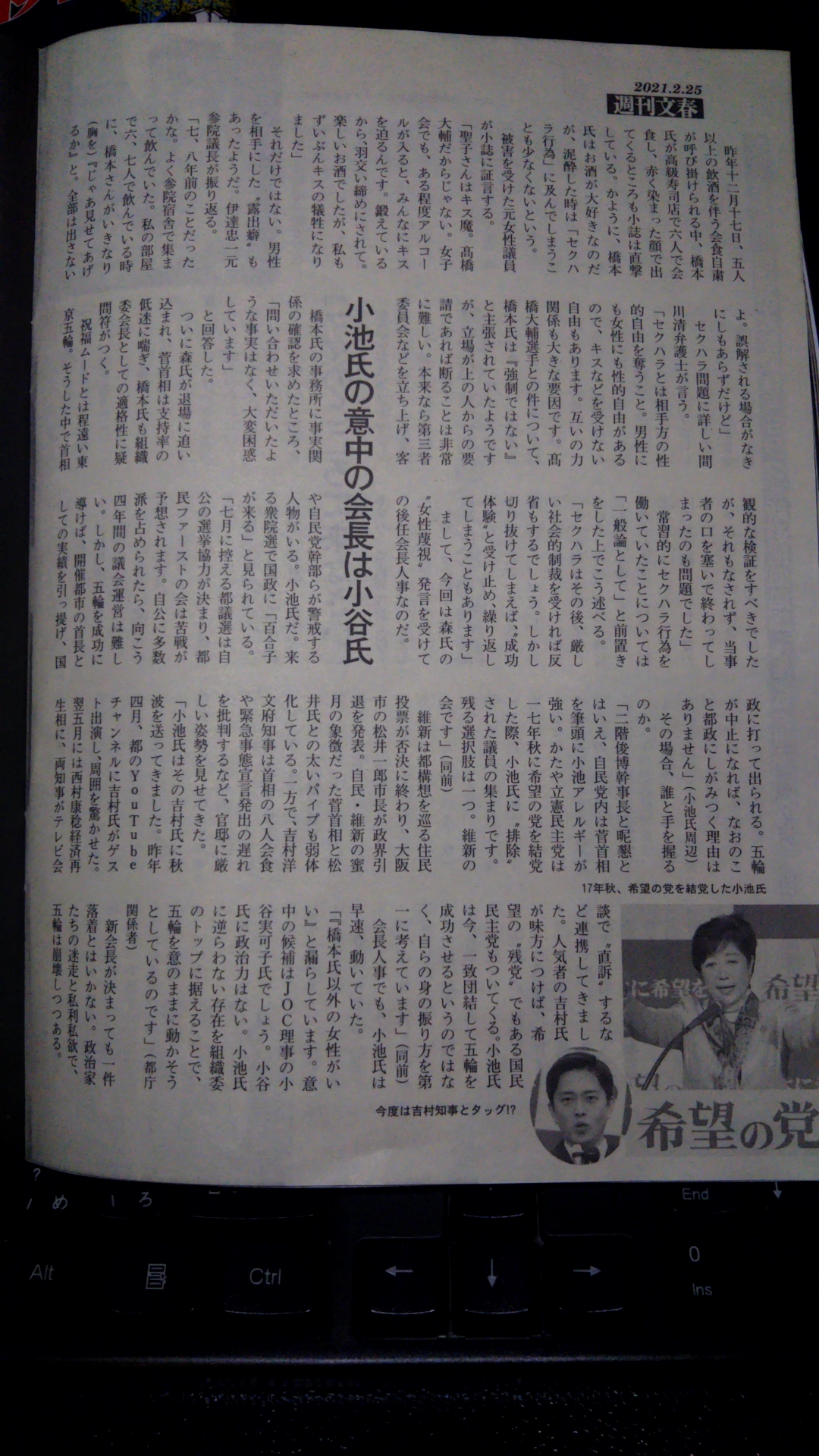 撮影されたのは、ソチ五輪が閉幕した今年2月23日の深夜のことだ。文春の記事によると、選手村では打ち上げが行われ、酒が入った橋本氏は次から次へと選手たちに抱きついていき、嫌がる高橋選手にキスをしたという。
