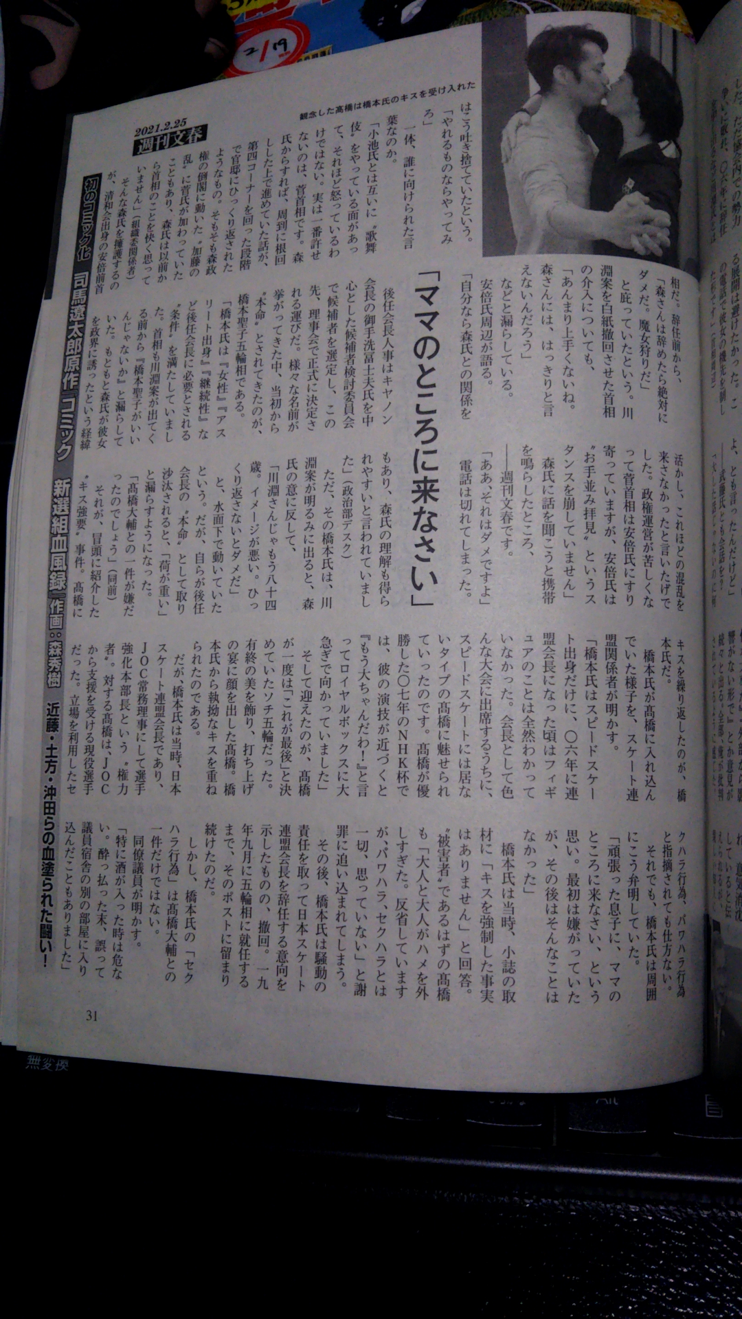 グラビアページには、橋本氏が顔をそむける高橋選手に一方的にキスを迫っているような写真も掲載されている。どうやらこれが「観念」する前ということのようだ。